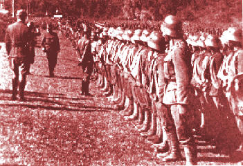 On the same morning as the Altipiano, the heights of Monte Grappa rang with Austrian gunfire. Three divisions of Austrian storm troops captured the western slopes of the massif and soon occupied the weather-bound heights of Monte Asolone. The two Italian divisions on this flank, men from Bari and Calabria, were no match for the gas, flame and trench mortars the Austrian infantry possessed. These new troops, all 18 years of age save their NCOs and officers, opposed these terrifying new weapons with repeated counter-attacks of cold steel and what little artillery they could muster. It seemed as if their army had forgotten them, as all directives, supplies and communications stopped. The actual cause of the silence was an enormous attack of 25 Austrian Sturm divisions, the true thrust of the "Solstice" offensive, smashing into the Piave line far below. Once again the severe mountain weather of constant fog and driving rain were to the advantage of the Austrian attackers--weather in the Alps generally comes from the northwest. The Abruzzi Division, the only Italian reserve, was thrown into this now downhill struggle. It was on these final southern slopes of Monte Grappa that the Italians unleashed their new weapon--the Arditi. These Italian assault troops were as heavily armed as the Austrian or German Sturmtruppen. They carried numerous light machineguns, dual barrel Villar Perosa sub-machineguns and a few flamethrowers. Their true spirit and success however, was not with their advanced weaponry, but a tactical ferocity with grenade and dagger at close quarters. Their counterattack collapsed the Austrian line, killing nearly half of the now retreating Austrians, halting only because of the dire circumstances on the Piave River far below. [No resupply or reserves could be sent up to Monte Grappa.] The Arditi's sheer fearlessness and extreme brutality made an Italian high command officer who witnessed the attack wonder what would become of these young men after the war, "these people who no longer know the value of human life." Of course we know the answer to this officer's question, in the brutal foundations of Fascism and Nazism. As their military tasks and mission were recognized, the size of the Arditi formations grew. In 1917 these shock troop battalions were attached to regiment and division- by mid-1918 the Arditi were found in their own assault divisions, with attached assets of mortars, combat engineers and trucks for rapid resupply/transport.