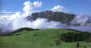 Asiago has two definitions- the Trentino highlands or Altopiano, and the Sette Comuni or Seven Communities. Asiago is also the name of the largest of the seven communities. The Altipiano is a natural citadel on a rugged highland plateau between the snowy Alps [to the north, east and west] and the rich Venetian plain [to the south.] It can be considered plateau only when compared to the towering Alps, for the Altipiano itself has mountains covered with dense coniferous forests and alpine meadows. Surrounded by an enormous escarpment, often of cliffs a thousand meters in height, the Altipiano rises from the lowland plains in only a few kilometers.