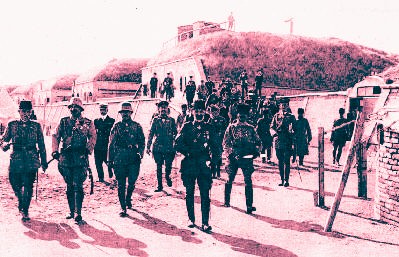 ![]() Turkish Ferries Near the DardanellesAll night we went chunking southward - it is well over a hundred miles from Constantinople to the upper entrance to the straits - and shook ourselves out of our blankets and the cinders into another of those blue-and-gold mornings which belong to this part of the world. You must imagine it behind all this strange fighting at the Dardanelles - sunshine and blue water, a glare which makes the Westerner squint; moons that shine like those in the tropics. One cannot send a photograph of it home any more than I could photograph the view from my hotel window here on Pera Hill of Stamboul and the Golden Horn. You would have the silhouette, but you could not see the sunshine blazing on white mosques and minarets, the white mosques blazing against terra-cotta roofs and dusty green cedars and cypresses, the cypresses lifting dark and pensive shafts against the blue - all that splendid, exquisite radiance which bursts through one's window shutters every morning and makes it seem enough to look and a waste of time to try to think. It is the air the gods and heroes used to breathe; they fought and played, indeed, over these very waters and wind-swept hills. Leander swam the Dardanelles close to where the Irresistible and Bouvet were sunk; the wind that blew in our faces that morning was the same that rippled the drapery of the Winged Victory. As we went chunking southward with our beans and cigarettes, we could see the snows of Olympus - the Mysian Olympus, at any rate, if not the one where Jove, the cloud-compelling, used to live, and white-armed Juno, and Pallas, Blue- Eyed Maid. If only our passports had taken us to Troy we could have looked down the plains of Ilium to the English and French ships, and Australian and French colonials fighting up the hillside across the bay. We got tea from the galley, and -with bread and helva (an insinuating combination of sugar and oil of sesame, which tastes of peanuts and is at once a candy and a sort of substitute for butter or meat) made out a breakfast. A Turkish soldier, the only other occupant of the deck, surveyed these preparations impassively; then, taking off his boots, climbed on a settee and stood there in his big bare feet, with folded hands, facing, as he thought, toward Mecca. The boat was headed southwest, and he looked to starboard, so that he faced, as a matter of fact, nearly due west. He had knelt and touched his forehead twice to the bench, and was going on with the Mussulman prayer when the captain, a rather elegant young man who had served in the navy, murmured something as he passed. The soldier looked round thoughtfully; without embarrassment, surprise, or hurry stepped from the settee, pointed it toward the Asiatic shore, and, stepping up again, resumed his devotions. ![]() German U-Boat & Turkish Patrol Boat at the DardanellesThe Marmora narrowed, we passed Gallipoli on the European side, ... and on into the Dardanelles proper and the zone of war. It was some forty miles down this salt-water river (four miles wide at its widest, and between the forts of Chanak Kale and Kilid Bahr, near its lower end, a fraction over a mile) from the Marmora gateway to the Aegean. On the left were Lapsaki and the green hills of Asia, cultivated to their very tops; on the right Europe and the brown hills of the peninsula, now filled with guns and horses and men. Over there, up that narrow strip of Europe, running down between the Dardanelles and the Aegean, the Allies had been trying for weeks to force their way to Constantinople. They had begun in February, you will recall, when they bombarded the forts at the outer entrance to the Dardanelles - Sedd ul Bahron the European side, at the tip of the peninsula, and Kum Kale, across the bay on the Asiatic shore.. These forts occupy somewhat the relation to Constantinople that Sandy Hook does to New York, although much farther away - they face, that is to say, the open sea, and the guns of the fleet, heavier than those of the old forts, could stand off at a safe distance and demolish them. When the ships pushed on up the strait toward Kilid Bahr and Chanak Kale - somewhat like trying to run the Narrows at New York - there was a different story. They were now within range of shore batteries and there were anchored mines and mines sent down on the tide. On March 18 the Irresistible, Ocean, and Bouvet were sunk, and it began to be apparent that the Dardanelles could not be forced without the help of a powerful land force. So in April landing parties were sent ashore: at Kum Kale and Sedd ul Bahr, at Kaba Tepe and Art Burnu, some twelve or fourteen miles farther north on the Aegean side of the peninsula, and at another point a few miles farther up. At Sedd ul Bahr and along the beach between Kaba Tepe and Art Bumu the Allies made their landing good, dug themselves in, and, reinforced by the fire of the ships, began a trench warfare not unlike that which has dragged on in the west. ![]() French Battleship FNS Bouvet Goes Under the WaveUnder these conditions the fighting had been going on for weeks, the English and French holding their ground at Sedd ul Bahr and Ari Burnu, but getting no nearer Constantinople. And as we went chunking down the strait that night and into Ak-Bash in the dark, two new forces were coming in. The next day a German submarine - come all the way round through the Mediterranean - was to sink the Triumph and the Majestic, while another American correspondent, who had intended to come with us but took the transport Nagara instead, saw the head of an English submarine poke through the Marmora. A blond young man in overalls and white jersey climbed out of the conning-tower. "Will you give us time to get off?" cried the American, the only one on board who could speak English. "Yes," said the young man, "and be damned quick about it." Ten minutes later, from the boats into which they had tumbled, the passengers saw a cloud of yellow smoke, and the Nagara 