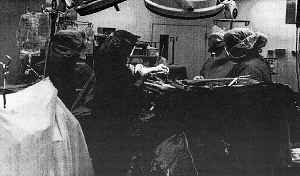 Co-author Dr. Alan Coulson (second from right) performing heart surgery in 1996.