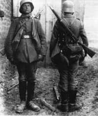 Sturmtruppen, or Stormtroopers (also known as shock troops) were first employed by General Oskar von Hutier, nephew to Ludendorff, on the eastern front in September of 1917. Hutier's strategy involved bringing the sturmtruppen up to the front under cover of darkness, launching a fast and powerful artillery bombardment (170 batteries supported by 200 medium and heavy mortars in this case) consisting of conventional explosives and gas. This replaced the prolonged bombardments that, in effect, warned the enemy of the coming offensive. Waves of sturmtruppen armed with the latest in weapons (flame throwers, grenade launchers, light machine guns) would then assault weak points in the enemy line in a leapfrog manner. The key to success was surprise and speed. This tactic accounted for large German gains during the late years of the war and would evolve into the blitzkrieg (lightning war) tactic of World War II. | |