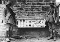 Stormtroopers exhibiting their weapons cache. Note the formidable array of grenades and bombs - all state-of-the-art for 1917. |