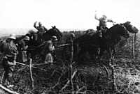 Positioning newly brought-up artillery for the surprise attack. A brief, but intense, barrage of high-explosives and gas will prepare the way for the shock troops. The enemy will still be dazed by the time the first wave reaches them. |