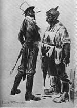 Louis Raemaekers "Neutral America and the hun." Uncle Sam with his hands in his pockets confronts the hun butcher. |