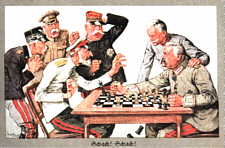 Unknown/postcard Germany checkmates Russia. On the left: Grand Duke Nicholas (seated), Cadorna, French and Joffre. On the right: Hindenburg (seated) and Hotzendorff. |