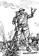 Rollin Kirby Victorious doughboy holds German helmet amidst the ruins of Catigny. |