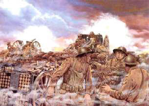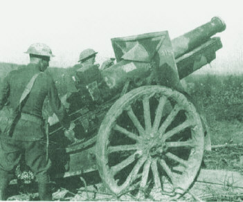 Professor Ferrell writes:For the Americans there was the continuing problem of artillery support. During these opening days in the Meuse-Argonne, the U.S. Army commanders could not quite grasp what was necessary. Going into the Meuse Argonne the AEF had known of the gigantic preparation fire and barrages of [German] Lieutenant Colonel Georg Bruchmueller. Some of the American commanders appreciated the need of infantry for fire that would destroy or hold down opponents. Artillery had long been a specialty of the U.S. Army. At Gettysburg, the classic battle of the Civil War, Union artillery had decimated General George Pickett's line. The army could hardly ignore its achievement in 1863, and its experts kept in touch with developments abroad. The army's three-inch field gun was as good as the French 75. But the other arms appear to have taken priority. The army's three-inch gun could not be produced rapidly enough, once war was declared, and it was necessary to use French guns.The army's artillery organization in 1917-1918, which designated one artillery brigade for each division, with two regiments of light three-inch guns and one regiment of heavy I55s, tended to persuade each division commander that one artillery brigade was enough and, moreover, if another division desired two, that was its problem. When a division went into the line for the first time it often found its artillery brigade unready, in which case it could lay claim to another division's brigade. Normally, however, each kept its own and felt satisfied. ![]() 35th Division Sector in Meuse Argonne AttackIt is saddening, too, that experience was to teach the AEF artillerists to vary the nature of the shells, so that when they were trying to take out the enemy's artillery the shells would be full of high explosive, while if enemy troops were the target the necessity was shrapnel. If they could get guns close enough, flat trajectory with its ricochet was the thing, rather than hole-digging. In the early days commanders fired what they had on hand. It is true that there were supply problems in obtaining stocks for special purposes. But there was no imagination in asking for the right sort of shells at supply dumps, nor in bringing up the guns. During the action of the Thirty-fifth Division on September 29, as on the four days that preceded, the artillery brigade used no gas shells, and there again, as in the general use of artillery~ it and the other divisions learned by experience. The Germans had employed gas shells from the beginning of the Meuse-Argonne. Colonel Wieczorek was gassed the first day. It was possible to contend that a good soldier would avoid gas, and there was some truth in that argument. When the Germans were attacking American troops in Montrebeau Woods they drenched the place; all low areas, especially ravines, were dangerous, and a good infantryman could keep that point in mind. Luck, as well as care, could save men. A member of the 110th Engineer Regiment manning the hastily improvised engineers' line that would save the division on September 29 remarked in his memoir of many years later that at the time he was so glad the weather turned cold, for it kept down the gas.3 But gas, even if controlled by the men who had to live close to it, was a terrible nuisance, and this was a part of the calculation of the German enemy that employed it. Troops in the woods were forced to stay there with masks, which were difficult to use because of trouble with breathing, and also because the circled eyeglasses fogged up. ![]() Artillery Brigade Command Staff, BG Berry with MustacheOn the morning of September 29 It was too soon in the AEF's developing understanding of gas warfare to use gas against the First and Fifth Guards divisions and the arriving German Fifty-second Division and avoid defeat of the U.S. Thirty-fifth Division. Of the quarter million Americans killed and wounded in the war, gas shells caused one-third of the casualties (shell and shrapnel half, and rifle and machine-gun fire one-tenth). In the artillery fire that accompanied the attack on September 29, and despite the need for artillery brigadiers to have experience, Berry made several miscalculations that seem inexcusable. One was to assign the 130th Artillery Regiment of heavy howitzers a fire by the map that would stand one kilometer north of Exermont until the rolling barrage, to be fired by the 128th and 129th regiments of light guns, moved up to that line, whereupon the 130th was to lift its fire to the German batteries at Chatel-Chehery. A standing fire north of Exermont might have prevented the Germans from reinforcing their defenses in Exermont, on Hill 240, known as Montrefagne, and in the Bois de Boon on top of it. Fire on the flanking batteries in Chatel-Chehery might have cut down on their fire during the infantry attack. But the division's infantry available for the attack was not strong on the right-hand side of the division sector, what with the 138th weakened by stretching to the right to cover the four-kilometer gap. On the left-hand side of the Thirty-fifth's sector the 137th had disintegrated and the 139th was starting to go. Both sides were in trouble and needed every artillery piece firing in the barrage, including the heavy howitzers of the 130th. ![]() French 155s Fired by the 130th Field ArtilleryThere was a third miscalculation on Berry's part. This, as one would have expected, was his guns' rate of fire. Jacobs believed they fired two shots per minute or less. The War College study says that each battery rested one gun while the others fired four shots per minute. Its estimate seems to be based on figures for shells fired that day, and those figures are not altogether clear, for they may well have been for shells on hand-in any event, to start with the number of shells and move back to the number of guns firing and the firing rate appears to be an uncertain way of calculation. After the war Colonel Klemm of the 129th told the