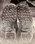 - Toe cleats studded with hobnails attached to the toe of each shoe.