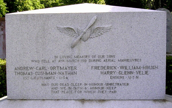 In addition to the memorial in Girvan (Doune) cemetery there is another memorial at Turnberry to all the other servicemen who were killed whilst learning or improving their flying skills. Including one from Kansas serving in the RFC.