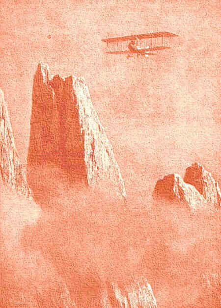 21. The top of the Italian Front -- an unidentified aircraft patrols over the mountain outposts of the Carnic Alps.