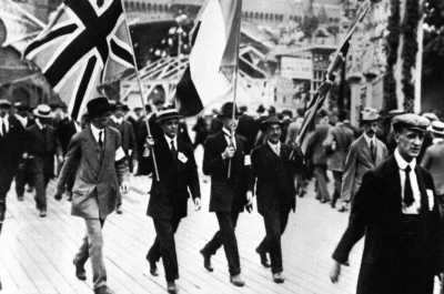 English and French, colors side by side, at the outbreak of hostilities. |