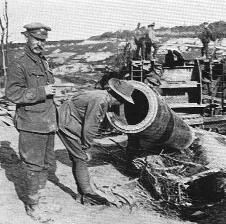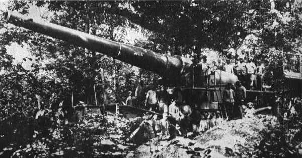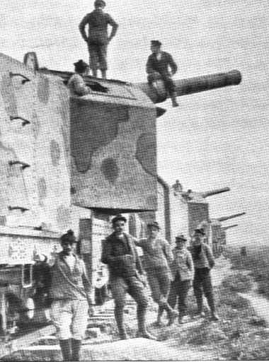 Introductory Notes The German advance through Belgium in the summer of 1914, early in the war, demonstrated the value of siege artillery in particular, and all artillery in general. The huge German Krupp 42cm howitzers (Big Berthas) and Austrian Skoda’s pounded the frontier fortresses into submission in only a few day’s time. This lesson was not lost on any of the belligerents, and the race to build and employ bigger and better artillery went into full swing. Let’s review some artillery terminology. There are basically two types of large artillery - the cannon and the howitzer (or mortar). A cannon fires a shell over a long arc and typically hits its target head-on. The howitzer (or mortar) lobs the shell over a high arc so it lands atop its target. Your choice of artillery depends upon the job at hand. Large guns, like handguns, are measured in caliber. This is the diameter of the barrel, and roughly, the shell it fires. Sometimes this measurement is given in inches, other times in centimeters or millimeters (thus a 42cm shell equivalent to a 420mm or 16.5 inch shell). The shells on naval ordnance are separate from the powder charge used to propel them (which is contained in a powder sack) whereas with smaller artillery, the powder charge is built into the shell much like a bullet. The advantage to a separate powder charge is that it allows the same shell type to be used over a wide range of distances by varying the charge. In the Great War, the largest artillery was the naval variety - the guns of the dreadnoughts. These were monster guns for the time, in the 12 to 16 inch class (these would grow larger over the course of the war). These represented powerful and highly accurate produce of the naval arms race and the industrial revolution. The battleship made a perfect platform for guns of such size. After all, what’s a couple of hundred tons when you are dealing with vehicles in the range of 18,000 to 28,000 tons? The water cushion on which the battleship sat also helped absorb the massive recoil generated by these weapons. Even with such high gross weights, many battleships employed lockout mechanisms that prevented two gun turrets from firing at the same time - not as much out of fear of rolling the ship as for the possibility of altering the trajectory of the second salvo by the roll caused by the first. It is interesting to note that several of the large siege guns used against the Belgian fortifications had to be set in concrete before they could be fired due to their massive recoil. Battleships were not an option on the Western Front, but the guns they used were seen as a tool that could help break the stalemate of the trenches - especially when used against the concrete fortified German positions near the Somme and later, the Hindenburg line. The first attempts at employing oversized naval ordnance simply consisted of putting the gun on a wheel mount and attempting to secure it in place. While advanced recoil mechanisms allowed for some success, deployment was still slow and cumbersome. The guns could only be moved slowly by large tractor. A worst case scenario would involve the gun falling into enemy hands in the event of a hasty retreat. Then came the rail gun. Rail presented the perfect transport and firing platform for land based naval ordnance. The gun could be moved relatively quickly along the rail system and the recoil could be dispersed by allowing the carriage to hurtle down the tracks (sometimes up to 100 feet). In some cases, a piece of curved siding was actually used to aim the gun. These guns could fire up to thirty miles and were capable of reaching far into the enemy’s rear positions. The culmination of the rail gun was the massive French Schneider 520mm howitzer. The shells this gun fired were over 24 inches in diameter and weighed 3,100 pounds. They were fused in such a way as to allow the shell to penetrate its target before detonation. Luckily for all involved, the war ended before they could be brought into service. Probably the most discussed of all of the big guns of the Great War is the infamous Paris Gun. Also known as Lange Max (Long Max), Big Bertha (not to be confused with the 42cm Krupp howitzer given the same nick name) and William’s Gun; this gun was strategic, rather than tactical in nature, in that it was a terror weapon meant to demoralize the citizens of Paris. This forerunner to the Iraqi supergun could fire a shell 70 miles in about 170 seconds reaching a maximum altitude of 24 miles - quite a feat of German engineering for 1918. On the down side, the payload was only 15 pounds of explosive, accuracy was non-existent (you could hit Paris but not a specific target in Paris), and the whole gun would have to be rebored after 65 firings. Schneider 520 information from Over There Vol 9 No 4, The Biggest Gun in WWI by Konrad F. Schreier, Jr.