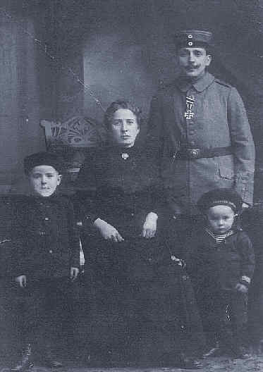 Jacob and Sophia resided in the Saarland before and after the war. He was an administrator in the coal mine industry before and after the war as well. The town in the Saarland is called Speisen. Their two children are Karl and Jacob Jr. Both Karl and Jacob Jr. grew up to fight in the Second World War. Karl survived the war having seen action in Russia. Jacob Jr. (sailor suit) was a Fallschirmjager [paratrooper] in the Luftwaffe. He was killed in action near Villa Franca Italy in April 1945.