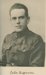 Carlos Wuppermann died at age 31 under mysterious circumstances of a single gunshot wound to the head while in the C.I.P. with the Army of Occupation in Trier, Germany, April 15, 1919 the same day as Red Cross nurse Jane Delano. Was a professional actor, poet, writer and playwright. Graduated from Columbia University and was a member of Phi Gamma Delta fraternity. His youngest brother was Frank Morgan, the "Wizard of Oz," and an elder brother, actor Ralph Morgan, co-founded the Screen Actors Guild in 1933. Carlos is buried under a large white marble cross at The Green-wood Cemetery in Brooklyn NY, with Frank, Ralph and other family members in the Hancox/Wuppermann plot, lot 14447, Section 168.