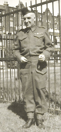 Born in 1890 in Glasgow, Scotland, James Ferguson immigrated to Canada and settled in Montreal, Quebec. On March 15, 1915 he enlisted as a private in the Black Watch 42nd Battalion of the Royal Highlanders of Canada and was sent to the front in France in June of the same year. During the course of the war, he rose to the rank of W.O. Class II, was wounded twice, and was awarded a medal for bravery. He was discharged by reason of demobilization in March of 1919 and upon returning to Canada, joined the Reserves. This photo, taken around 1941, shows him in Reservist uniform.