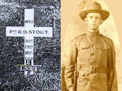 Roland Bixby Stout was b. 6-12-1900 in Elon College, Alamance County, North Carolina d. 10-6-1918 Islay, Scotland buried Kilchoman Military Cemetery Grave No. 167. [Marker shown here.]