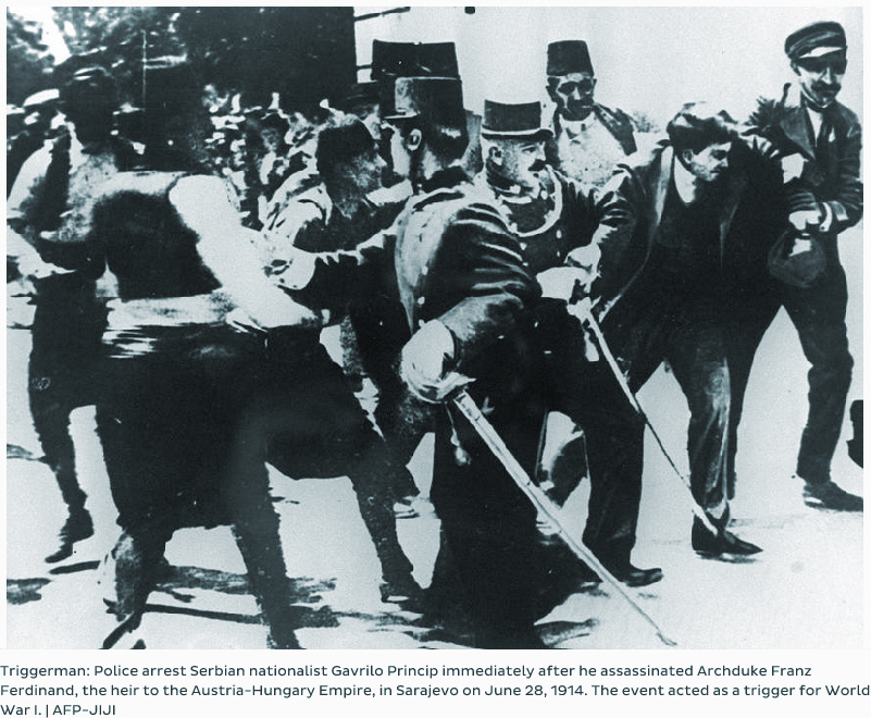 For a century the photo above has appeared in newspapers, books, and websites with a caption similar to the one shown. It purports to be a photo of assassin Gavrilo Princip under arrest after the murder of the Archduke Franz Ferdinand and his wife. It is not Princip, however. The individual shown in custody is his fellow assassin Nedeljko Cabrinovic, who had made an earlier unsuccessful attempt.