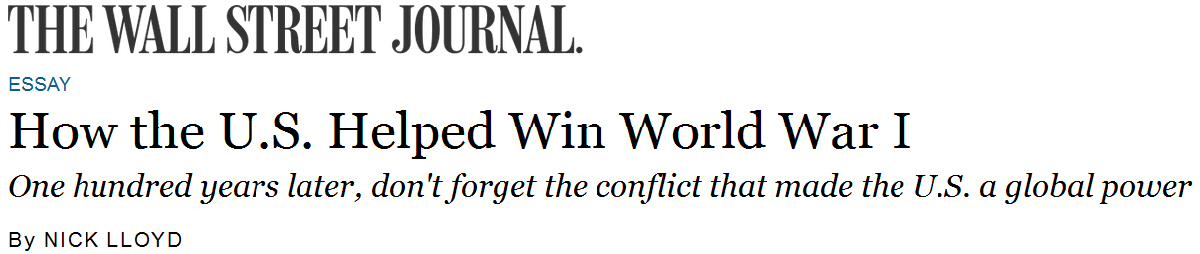 British author Nick Lloyd (Hundred Days: The Campaign That Ended World War I) contributed a tremendous and refreshing bit of commentary in the 24 January edition of the Wall Street Journal. Please read it if you can. He raises some excellent points, such as: