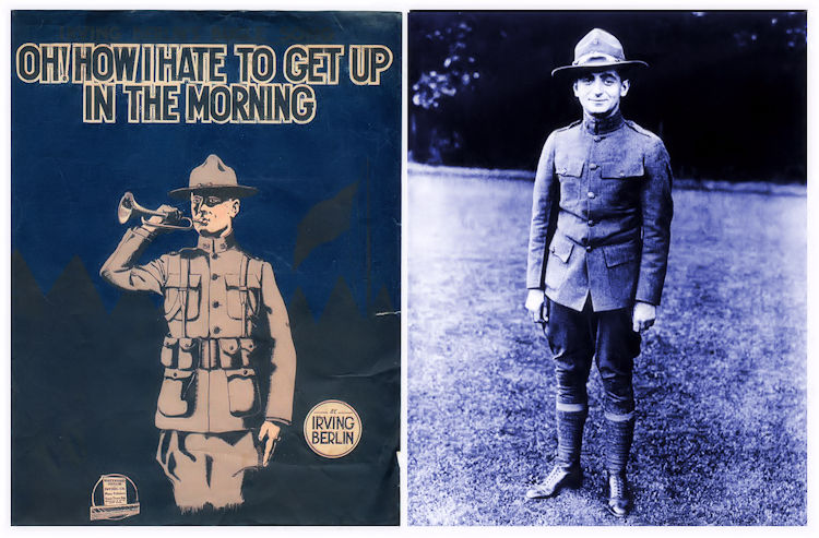 Already a well-known songwriter when the war began, Irving Berlin, himself an immigrant whose family came from Siberia, was drafted into the U.S. Army in early 1918 and assigned to Camp Upton, located in Yaphank, Long Island, New York. There Berlin wrote a Ziegfeld-style revue featuring a cast of soldiers called Yip, Yip, Yaphank, which helped raise money to construct a camp community center. "Oh How I Hate to Get Up in the Morning," one of the show's hit tunes, expressed Berlin's distress over early morning reveille. Earlier it had been introduced by Eddie Cantor in the Ziegfeld Follies.