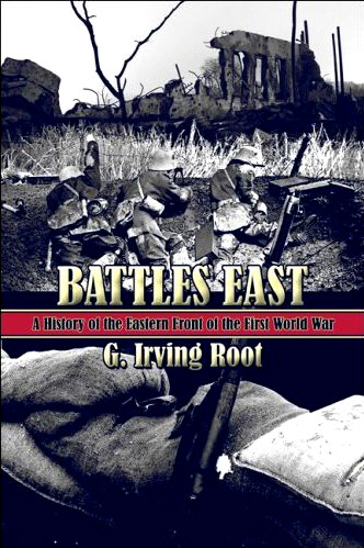 In all, this is a valuable addition to the slim library of WWI Eastern Front histories* and well worth reading. Weaknesses include the maps (which though plentiful and detailed are monochromatic and hard to decipher) and exclusive reliance on secondary sources. Battles East: A History of the Eastern Front in the First World War, G. Irving Root, Publish America, 2007, 387 pages, bibliography, maps, ISBN 1 4241 6800 7, $24.95 paperback. Order from (link).