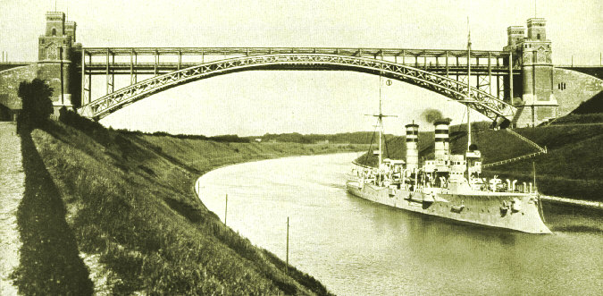German Light Cruiser Urfona (2,700 tons) Passing Through the Kaiser Wilhelm Canal (Probably Prewar)