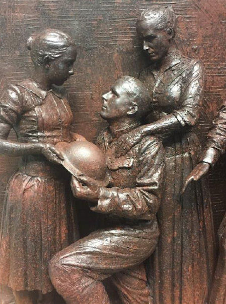 The sculpture, “A Soldier’s Journey,” includes the five narrative elements of the archetypal myth of the hero’s journey: departure, initiation, ordeal, aftermath, and return.