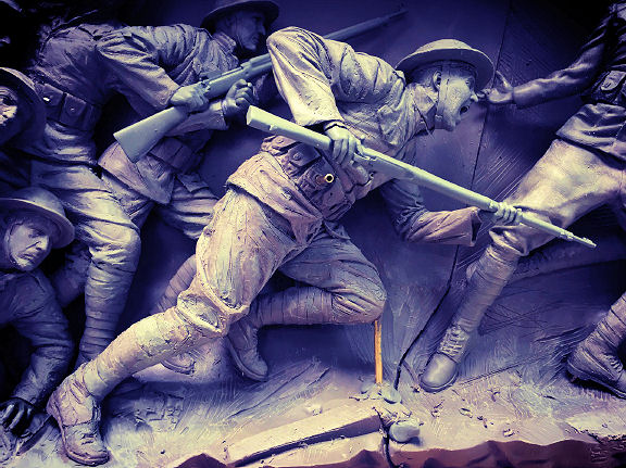 The artist's intent is to capture the tumult of battle–what Woodrow Wilson foresaw as “fiery trial and sacrifice”–the courage of American troops in desperate and violent situations.