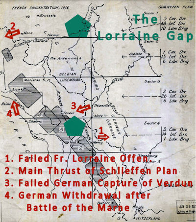 We continue our coverage of the early 1914 campaign on the Western Front with an examination of one of those small, accidental consequences of a larger scale dynamic that turns out to have major and lasting influence. Last month's issue focused on the best-known result of the dual-failure of Germany's Schlieffen Plan and France's Plan XVII, the somewhat mislabeled "Race to the Sea." Next month, the spotlight will be on Flanders in October 1914 when the trench warfare of the next 41 months got locked in for the entire Western Front. In this issue, we are temporarily shifting focus to eastern France, where in the fall of 1914, a 40-mile gap, nearly void of attackers or defenders, opened there for a short period of time that no one seemed to have anticipated. In the following scramble the gap would be closed, but the stabilized section of the front would create a lasting threat for both sides. American sources call the St. Mihiel Sector and most other parties refer to it as the Woëvre Plain. For the Allies the final line formed a threatening salient into their defenses; for Germany, it was a back door to the Rhine and the heart of the Fatherland. So, this month, we examine the consequences of what I have named the "Lorraine Gap." MH