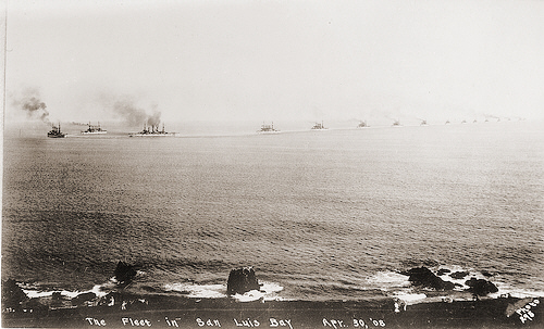 This first station also includes a series of photos on the prewar visit of 16 battleships of the Great White Fleet's visit to the area in April, 1908, during their round-the-world cruise.
