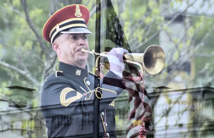 An Army Bugler Using General Pershing Bugle Accompanies the First Raising of the Colors Over the Memorial
