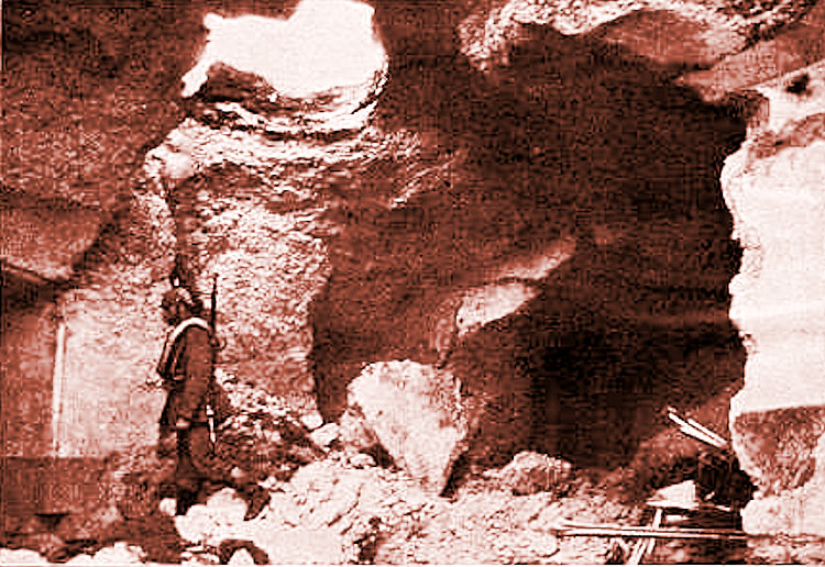 and searchlights positioned on the walls; concrete-protected machine gun positions and powder