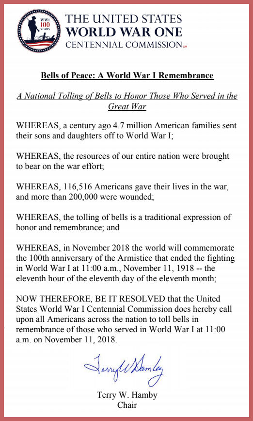 World War I veterans in every way possible during this Centennial year. In addition to tolling