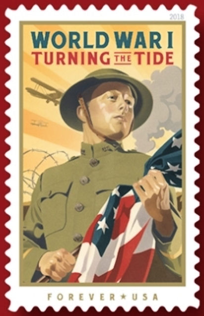 With this stamp, the Postal Service pays tribute to the sacrifice of American soldiers and millions of supporters on the home front who experienced World War I. Entering World War I (1914–1918) in its later stages, the United States helped by "Turning the Tide" of war in favor of the Allies.