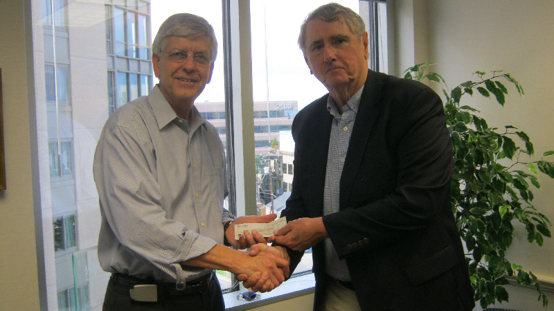 Regular readers know that we have been expressing our strongest support for this great Centennial project, urging you to contribute financially and stating that I planned to do so myself. Well, I did it. Below is a photo of your editor (on the right) handing his check to Mike Conley, Director of Public Affairs of the American Battle Monument Commission, on 13 June at the commission's Arlington, VA, headquarters. My contribution, alas, was not sufficient to fund the entire effort, so please consider contributing yourself. Download the project brochure for more information on how you can help.