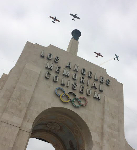 Commission Volunteer Courtland Jindra sent this photo of the flyover on Memorial Day at the Los Angeles Memorial Coliseum. It should be remembered that the Coliseum is dedicated to all the nation's fallen of the war.