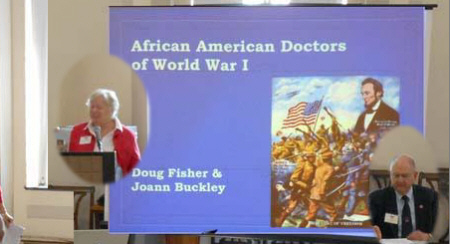 Doug Fisher & Joann Buckley's African-American Doctors of World War I discussed the 104 black physicians assigned to care for the 40,000 men of the 92nd and 93rd Divisions, the Army's only black combat units. Aside from being overworked, these men had to cope with the racial attitudes of a segregated Army. 1st Lt/Doctor Urbane Bass was KIA 17 October 1918 while attending wounded soldiers. Bass is buried in the Fredericksburg National Cemetery. Click on title to purchase,