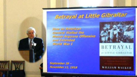 William Walker's Betrayal at Little Gibraltar was a thought-provoking discussion of the battle for Montfaucon. He advocates Major General Bullard's failure to follow orders cost many American lives and possibly prolonged the war. Rather than being cashiered, Bullard was saved by Pershing and "the West Point Protective Association." Was Montfaucon a major victory or a major cover-up? Purchase Betrayal at Little Gibraltar HERE