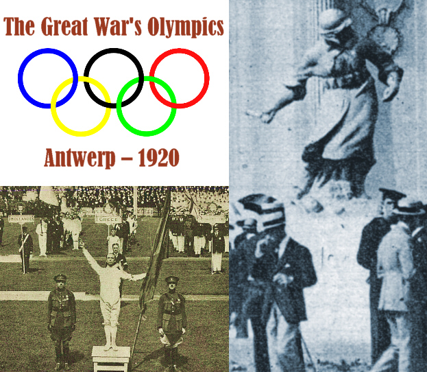 competition, something like a hurdler or discus thrower, was a statue of a soldier heaving a grenade. At the opening ceremony, Belgian soldiers ringed the field, and the American contingent was led by a flag bearer in the team uniform of blazer and straw boater accompanied by four officers of the U.S. military. The Olympic Oath—delivered for the first time at Antwerp—was taken by medal winning water poloist and fencer Victor Boin, who had received the Croix de Guerre with Palms (both French and Belgian Croix de Guerre), for having bombed and sunk an enemy submarine in the North Sea, destroying numerous floating mines and rescuing several French aviators. He was supported in the ceremony by two fellow Belgian war heroes. Source: Over the Top, March 2008