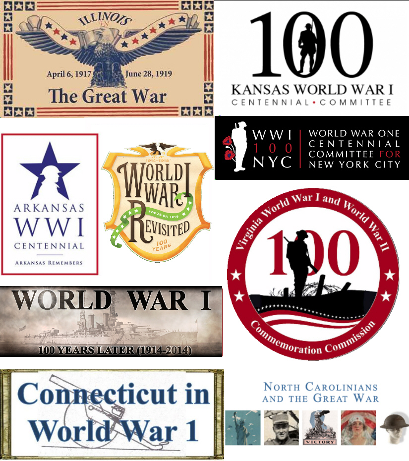One way you can foster interest in America's Great War experience and an appreciation and pride in the nation's heritage is to participate in the many local efforts being initiated around the country. The World War I Centennial Commission has provided a big push for these committees. Below are logos of just a few of the efforts being mounted by states, communities, and ad hoc groups. Try to find out what's going on in your neck of the woods and attend their events. Volunteer to help their efforts if you can.