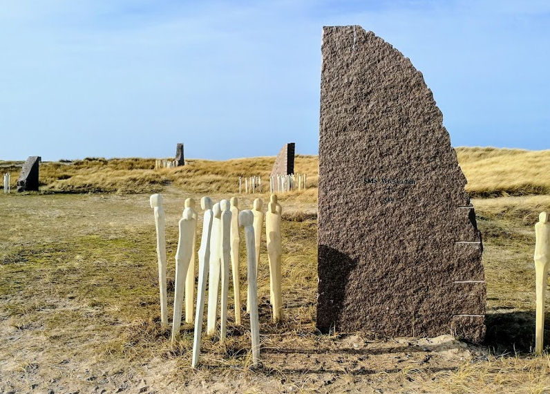 One of the more creative memorials to be dedicated during the recent WWI Centennial is spread across the dunes along the North Sea near Thyorøn, at the very tip of Denmark's Jutland Peninsula. Twenty-five granite stones shaped as ship bows represent every ship sunk in the 1916 Battle of Jutland, which was fought about 100 km. offshore. They are surrounded by human figures showing a proportional representation of the 8,645 seamen who perished in the battle.