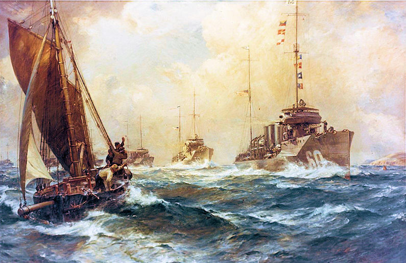 On 24 April 1917 six destroyers of Division Eight, Destroyer Force, Atlantic Fleet, under Commander Joseph Taussig were tied up in Boston, Massachusetts, prepared to depart immediately upon receipt of orders. The vessels were among the most advanced destroyers in the Navy at the time. Sealed orders from Washington arrived that morning and at 1645 Davis (Destroyer No. 65) shoved off and steamed for open sea followed in single file by McDougal (Destroyer No. 54), Wainwright (Destroyer No. 62), Conyngham (Destroyer No. 58), Taussig’s flagship Wadsworth (Destroyer No. 60), and Porter (Destroyer No. 59). At a prescribed position 50 miles east of Cape Cod, Taussig unsealed his orders in which Secretary of the Navy Josephus Daniels tasked the division “to assist naval operations of the Entente Powers in every way possible.” He ordered the vessels to sail to the British naval base located at Queenstown (now Cobh, pronounced "Cove") on the southern coast of Ireland, ideally located to combat the submarines infesting the strategically essential Western Approaches to the British Isles.