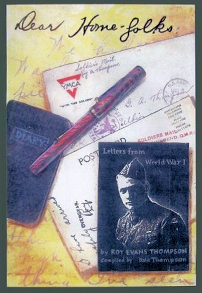 Roy's son, Dale Thompson, has compiled all his father's war letters, diary, documents, and photos, along with considerable biographical commentary on his dad in a 206-page book titled Dear Home-folks. (Cover shown on right.) If you would like an autographed copy email Dale at: DALE.THOMP2@GMAIL.COM. The price is $12.00 plus mailing.