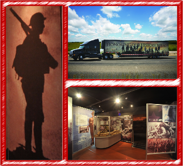 Our friends at the National World War I Museum have done something remarkable -- a traveling version of their institution. It is cruising around the nation to great acclaim, and plans are to visit 75 communities around America. Pictured above is the display on the road and an interior shot of one of the internal display bays. Corporate sponsors Waddell & Reed and the Ivy Funds (founded by WWI veterans) allowed the museum staff to create a remarkable distillation of their main collection in Kansas City. The displays cover trench warfare, total war, America's entry, going "Over There," the roles of women and minorities, and the Armistice. Visit their website to see the schedule. http://honoringourhistory.com/