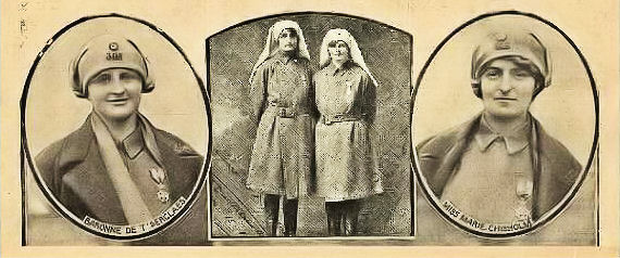 Many of those [women] who initially rushed to sign up [for war work] had never been farther than the boundary of their village, or town, and had known few people outside their neighbors and, later, those they worked with. Going to war was to be the big adventure. Which brings me to two women who immediately saw the opportunity to blend adventure with service: Elsie Knocker and Marie Chisholm, who, arguably, became the most famous women of the Great War, as news of their courage reached Britain and, indeed, the rest of the world. They became known as the "Angels of Pervyse" after the village north of Ypres where they cared for the wounded for almost four years. (From Jackie Winspear's Blog)