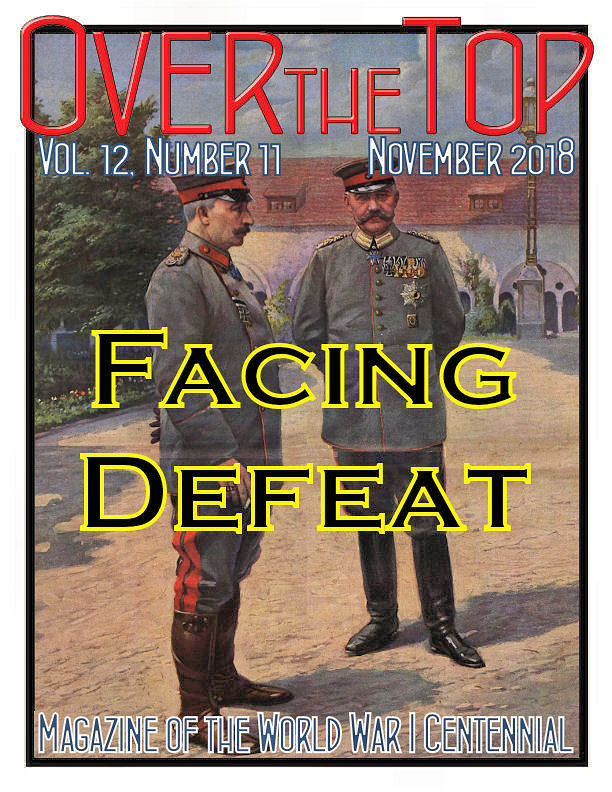 For the past four years, my efforts in all my historical publications have (mostly) involved drawing on the Centennial events of the war as they unfolded. My thinking on this was two-fold: discussing the war over the same timeframe in which it unfolded would give some insights on how the stresses of wartime affected and changed peoples' attitudes over those four years, and, as the anniversary of each major event came, there would be lots of coverage of each of them in the press, television, and movies, generating interest and discussion. Frankly, I've been pretty disappointed on the second of these points, but–be that as it may–with the anniversary of the signing of the Armistice, the Centennial commemorations will effectively end. There are other 100th commemorations yet to come, like the signing of the Versailles Treaty, but there will be nothing comparable, say, to the Battle of the Somme or America's entry into the war. In any case, I plan to continue publishing the St. Mihiel Trip-Wire, but I need to reshape it a bit, eliminating the Centennial emphasis and giving it a fresh look. This might be ready for the December issue, but maybe it will take longer. Nevertheless, I hope you plan to keep subscribing, The First World War–as you well know–is endlessly interesting, and I'll never run out of fascinating material for the Trip-Wire.